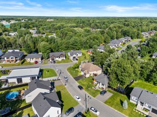 The perfect bungalow for your family! Featuring 4 spacious bedrooms, 2 full bathrooms, a modern kitchen with a large island and plenty of storage. Cozy propane fireplace for a warm and inviting atmosphere. Bright basement and convenient main-floor laundry room. Private backyard with a spa (not included), patio, shed, and well-maintained landscaping. Located in a peaceful and highly sought-after neighborhood, ideal for family living. Possession flexible. Step inside and let yourself be charmed!