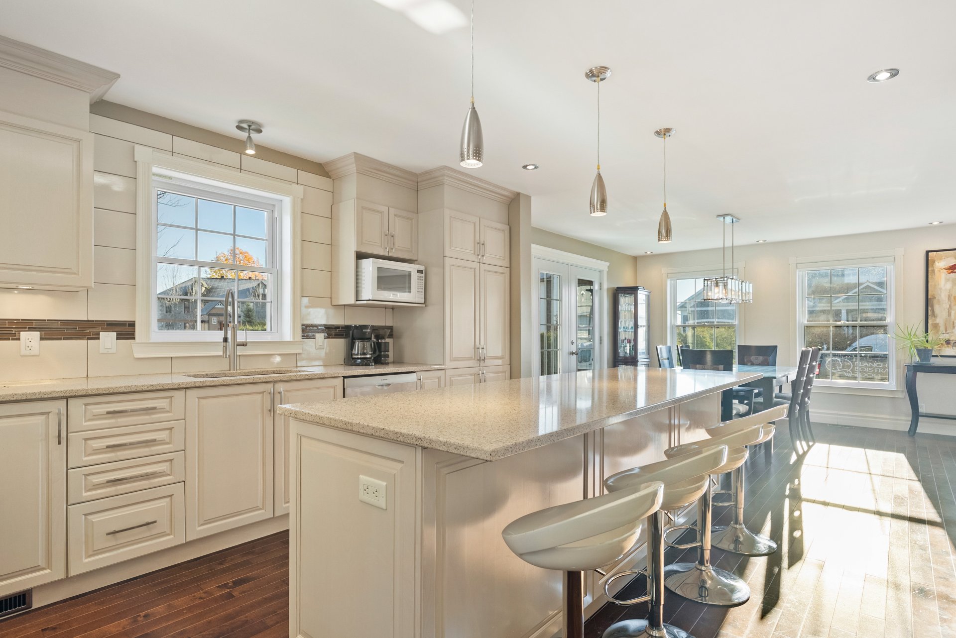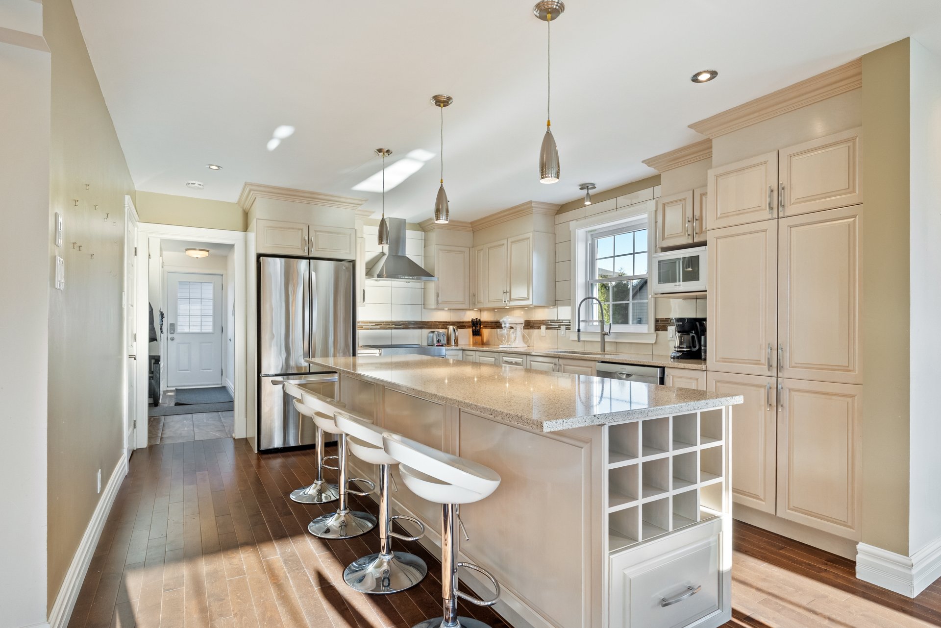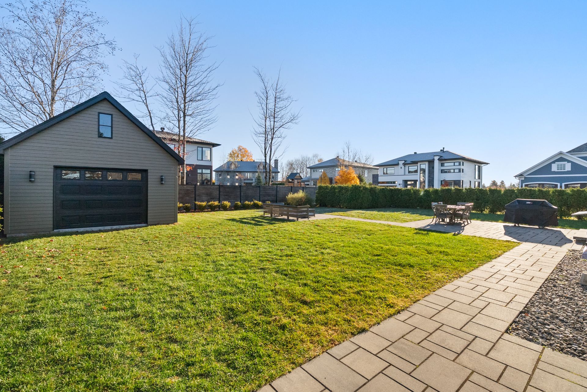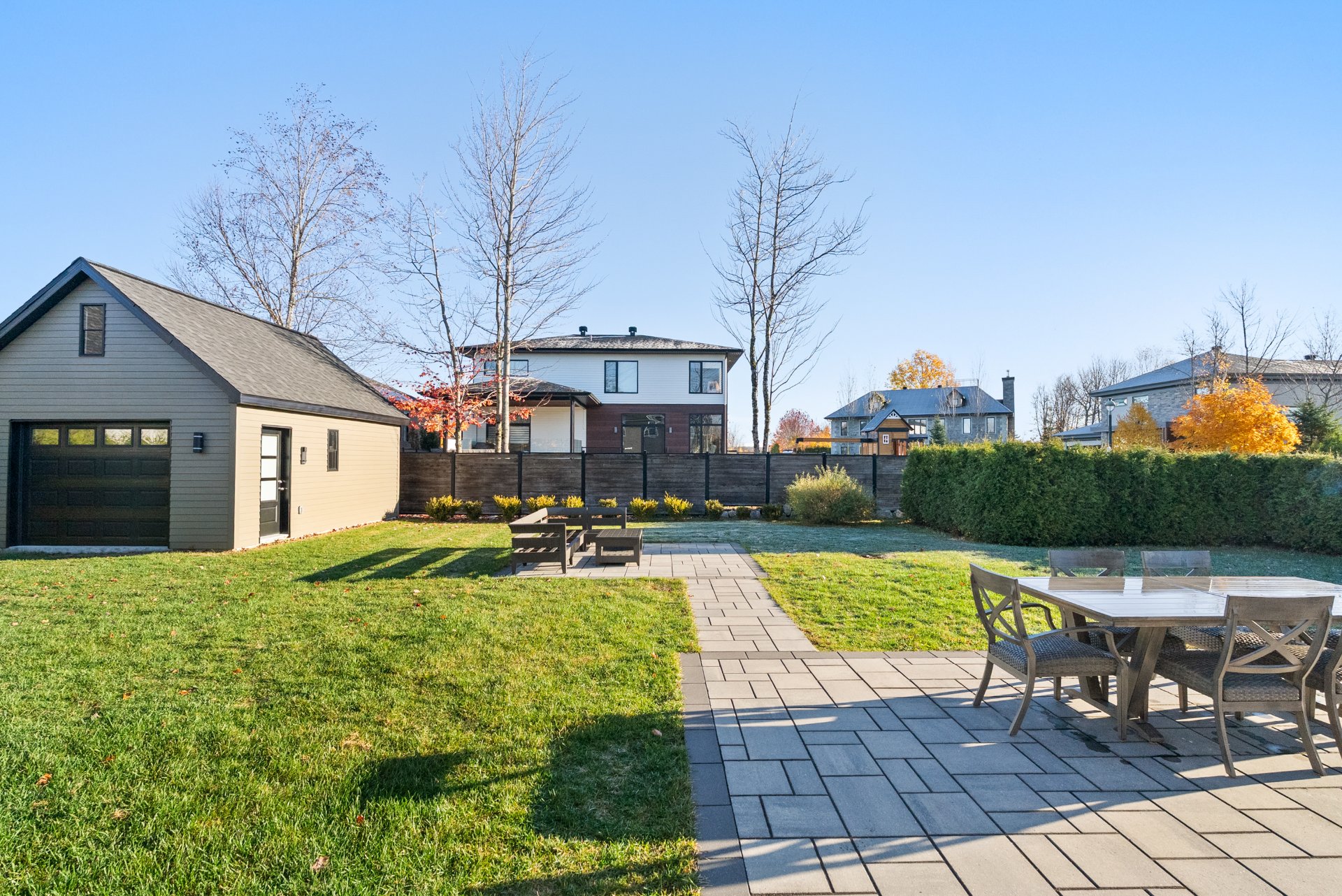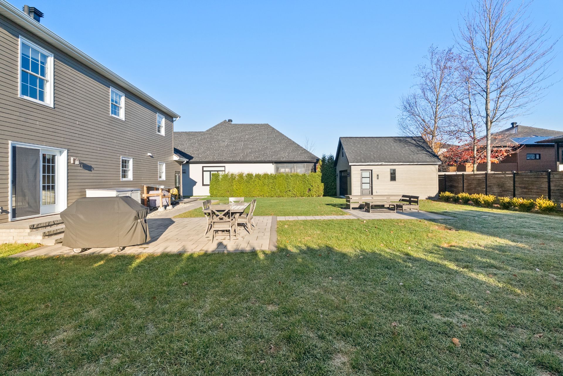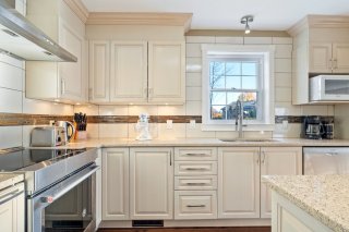 Inclus : Luminaires, habillages de fenêtres, lave-vaisselle, miroir de la salle de bain à l'étage, abris pour air climatisé et clôture pour protéger la haie, aspirateur central et ses accessoires