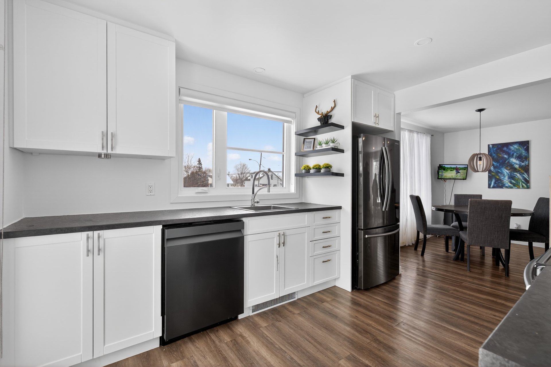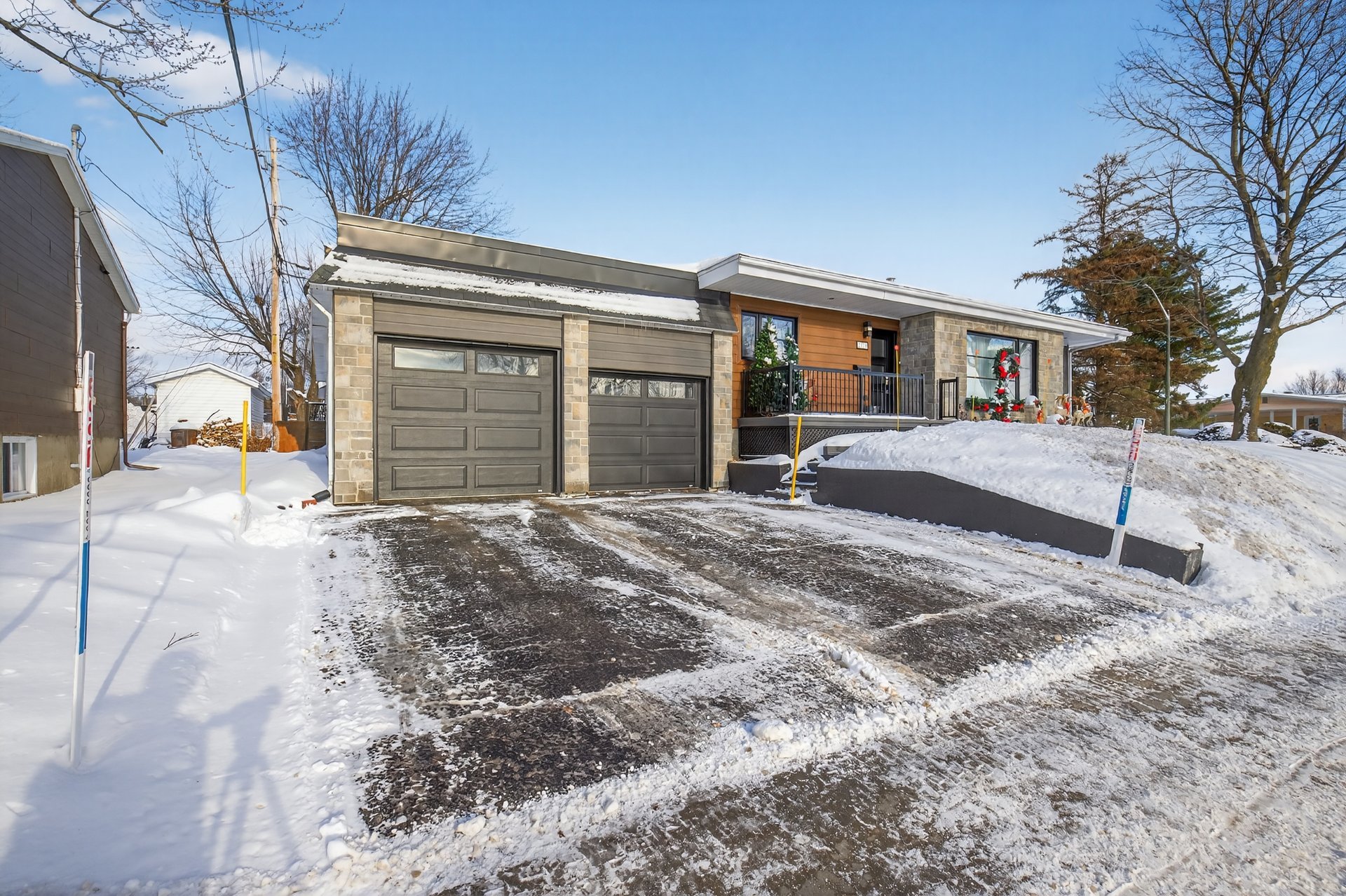 Rez-de-chaussée fraîchement repeint ! Superbe plain-pied soigneusement entretenu offrant 2 chambres au rez-de-chaussée ainsi qu'un impressionnant garage de 22 pi x 46 pi pouvant accueillir jusqu'à 6 voitures -- un atout rare, idéal pour bricoleurs, entrepreneurs ou amateurs de grands espaces. La cuisine et la salle de bains sont au goût du jour. Beaucoup de temps a été investi dans l'aménagement paysager afin d'offrir un espace extérieur agréable durant la saison estivale (voir photos du propriétaire). Le sous-sol est partiellement aménagé avec une hauteur d'environ 6 pieds 4 donc non standard. Prise de possession 1 juillet 2026.