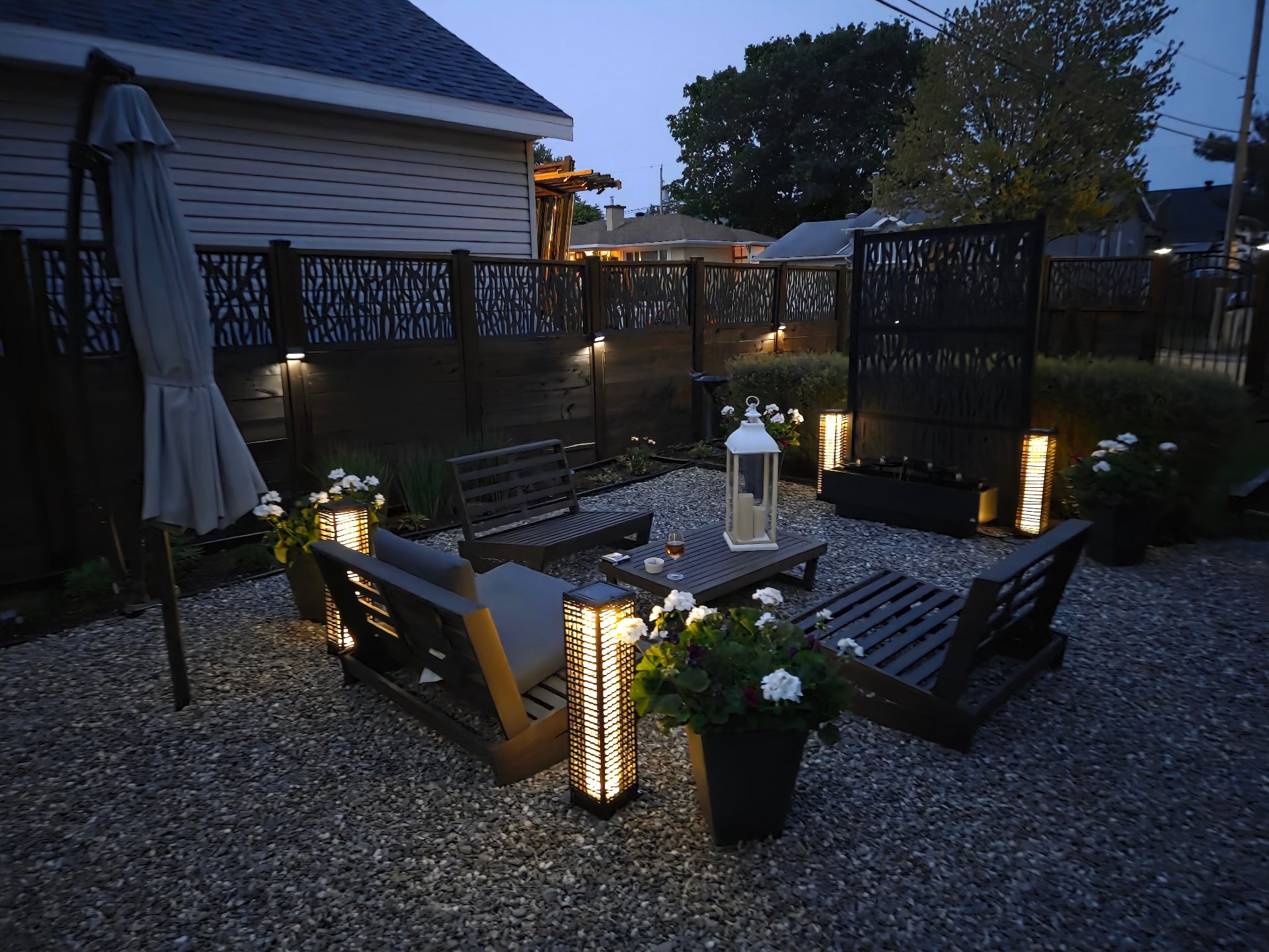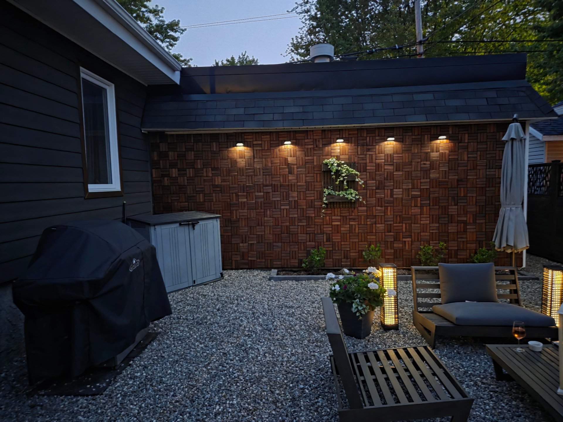 Inclus : Luminaires, stores, cabanon jardin, étagères dans le garage, échelle