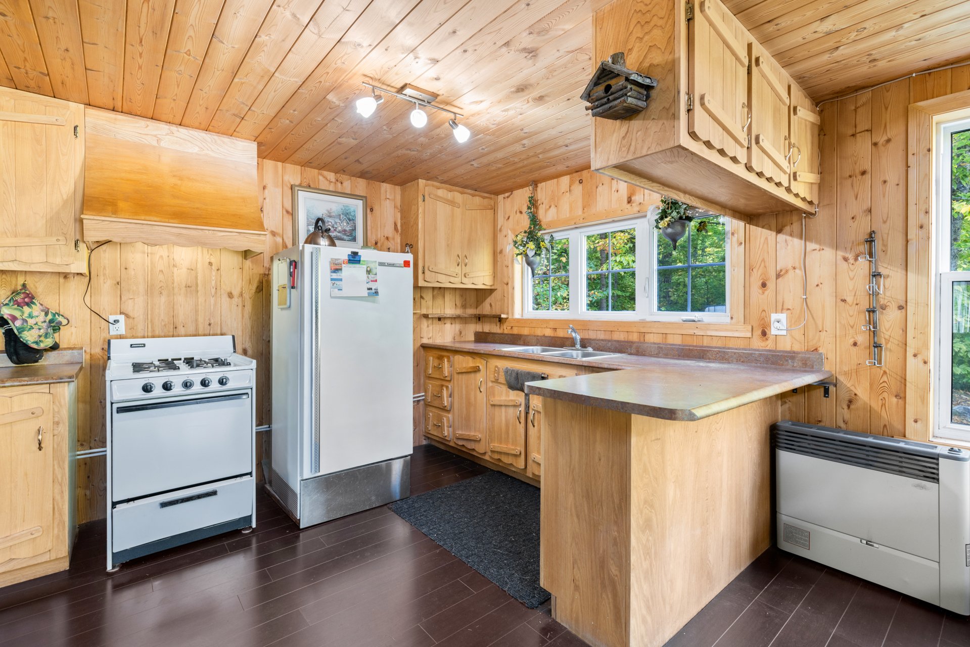 Inclus : Tous les meubles dans le chalet, luminaires, électroménagers, barbecue et chauffe-terrasse