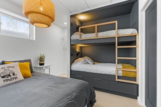 Inclus : Luminaires, lits superposés, lits à étages, laveuse et sécheuse superposées.