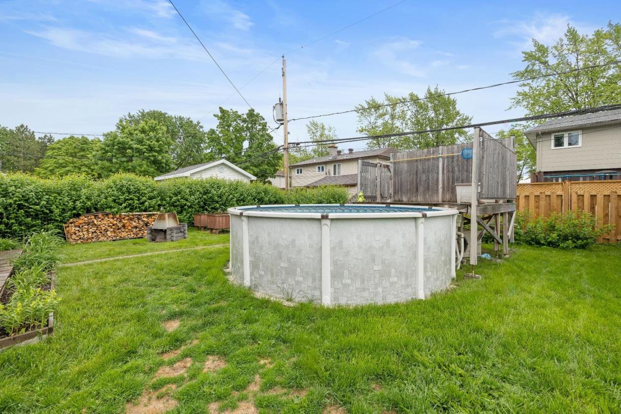Inclus : Stores des fenêtres, luminaires, piscine hors terre avec ses accessoires et sans garantie de bon fonctionnement