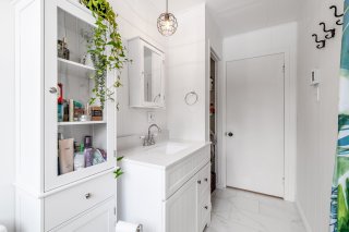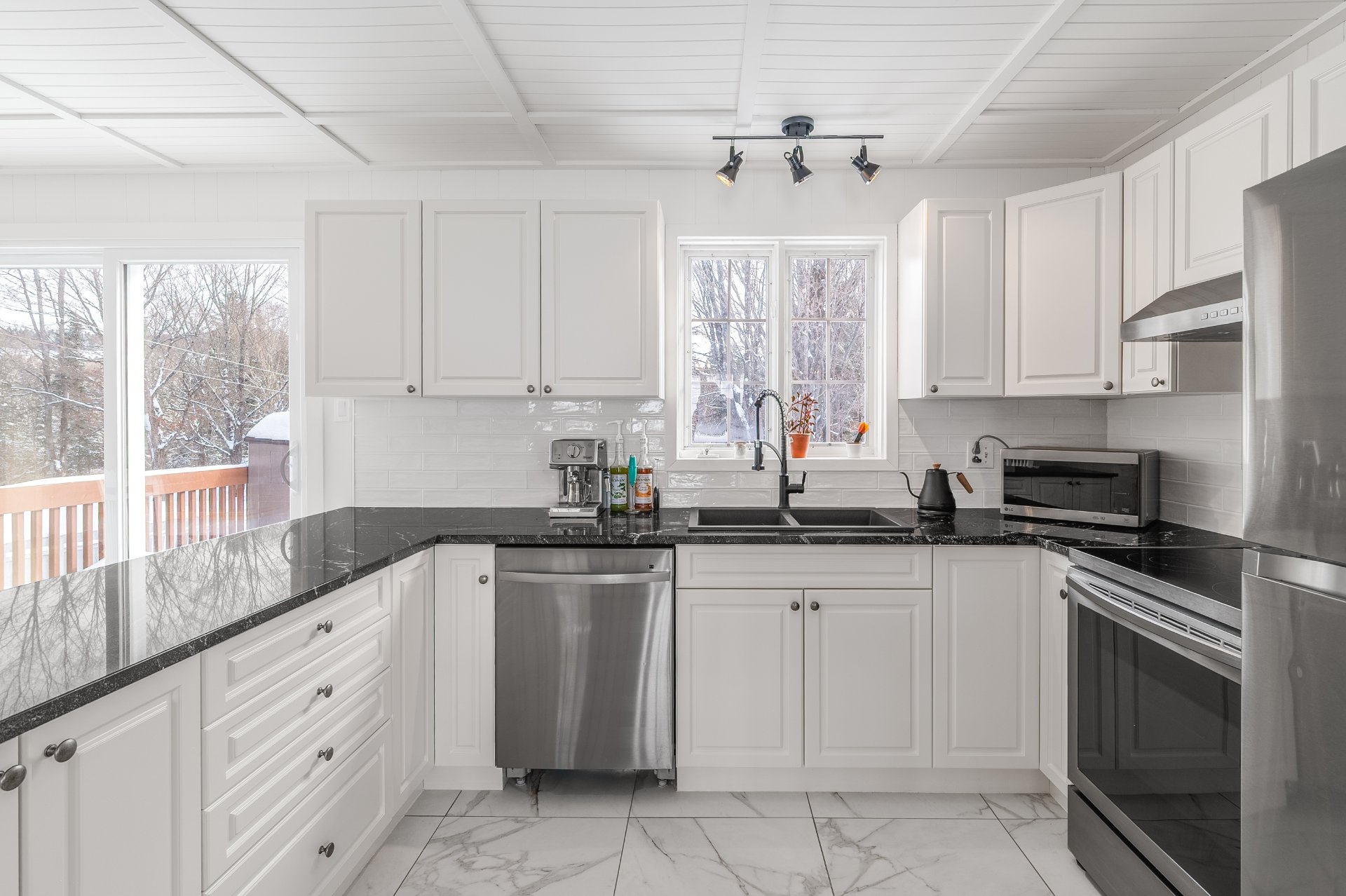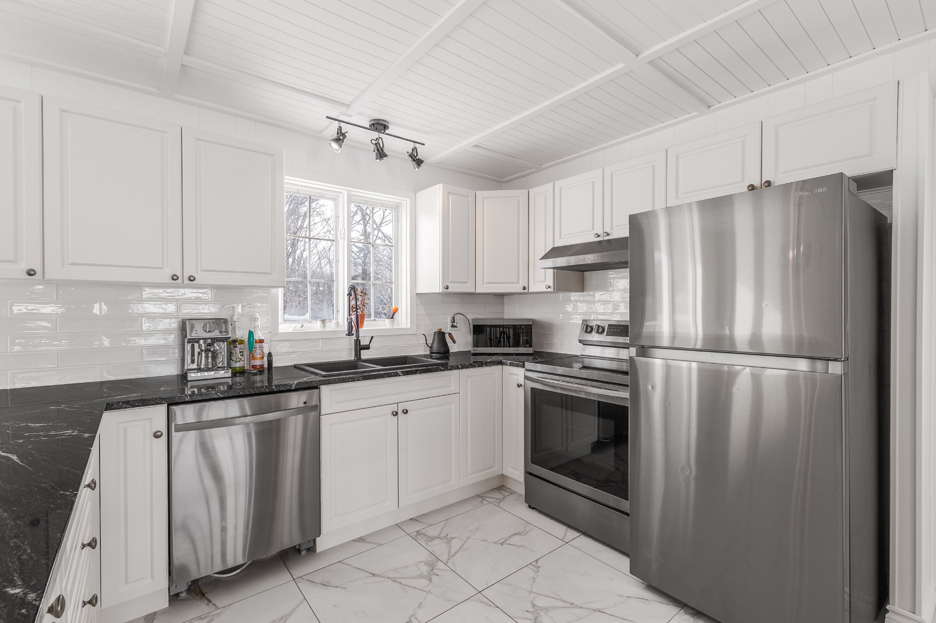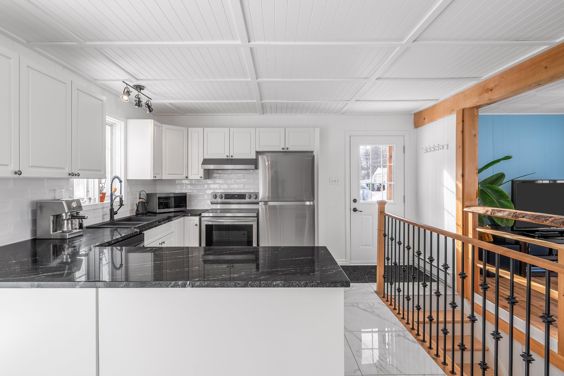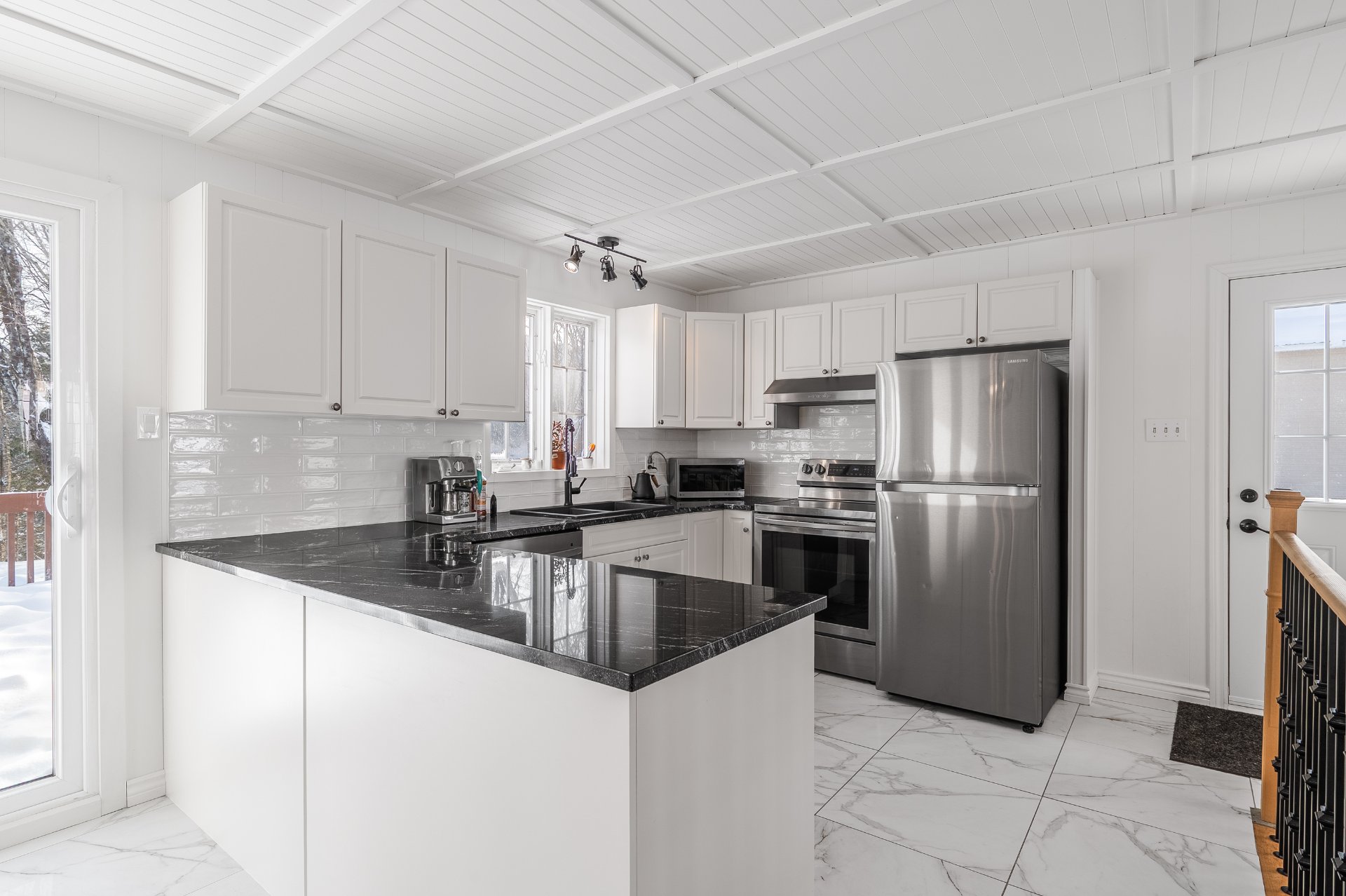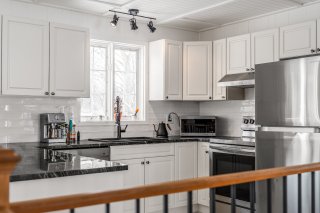Inclus : Luminaires, habillage des fenêtres (sauf la salle de bains du rdc), casiers de rangement au sous-sol, hotte.