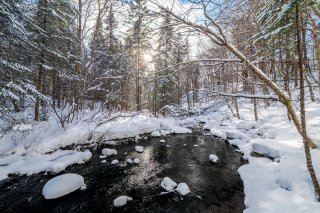 Donnant directement sur un boisé et une rivière, il vous