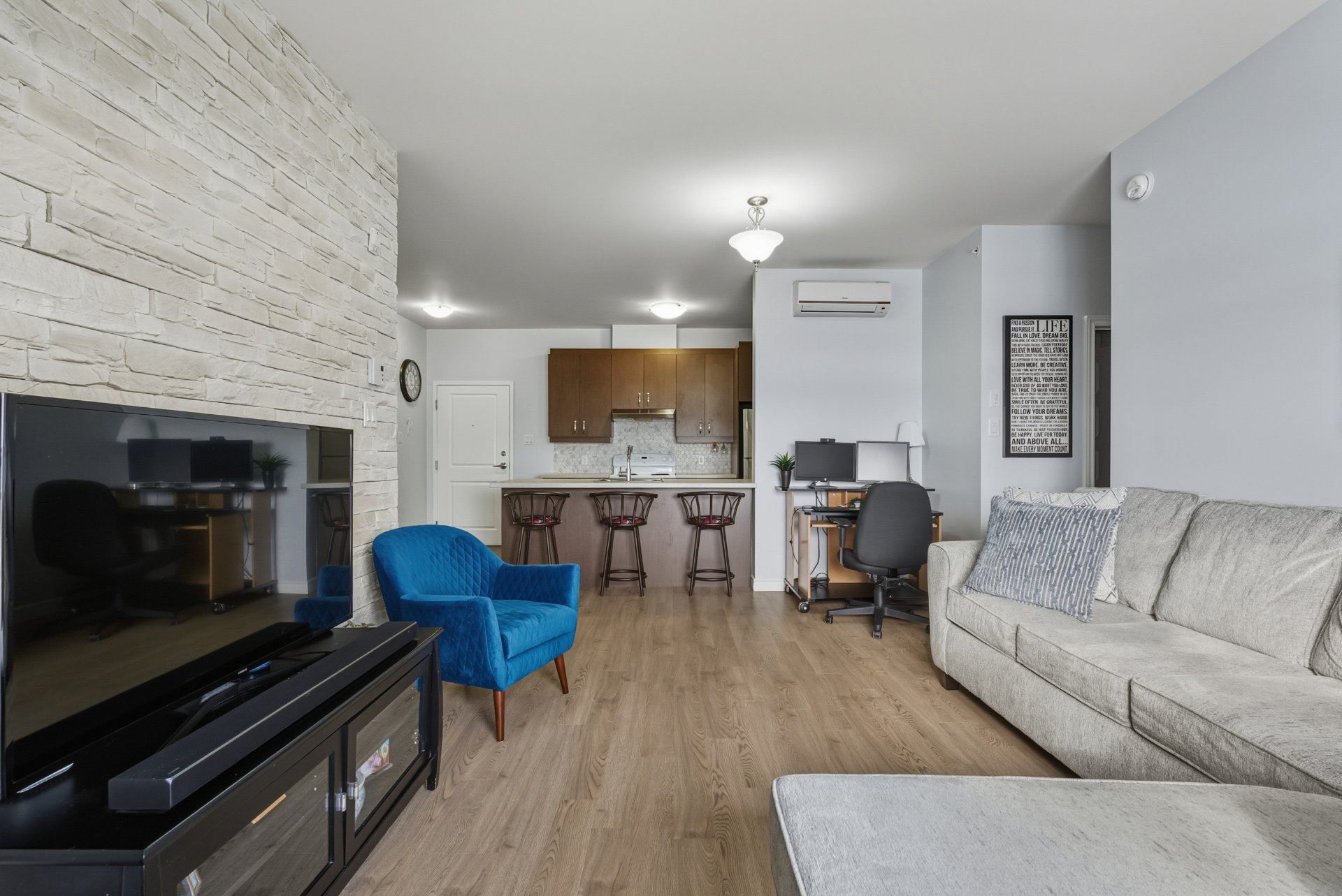 Superbe condo à Boischatel, entretenu avec soin, offrant un salon lumineux et une magnifique vue sur le fleuve. Situé au 4e étage avec plafonds de 9 pieds, il compte 2 chambres dont une avec walk-in, 2 stationnements extérieurs et un rangement intérieur. L'immeuble propose piscine creusée chauffée, gym, salle communautaire, billard, ascenseur et chute à déchets. Copropriété en excellente santé. Prise de possession rapide. Venez le visiter, vous serez charmez! Visite libre dimanche 7 décembre de 14h à 16h