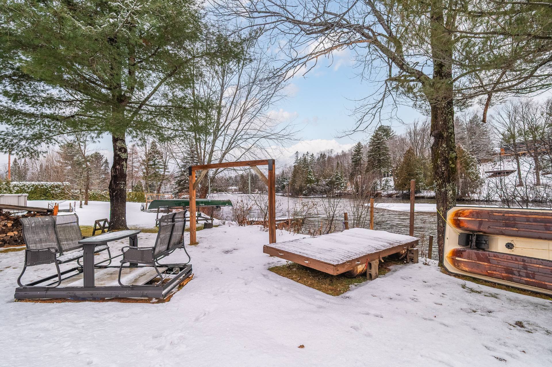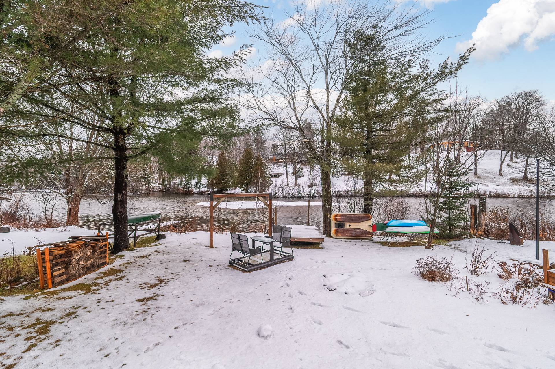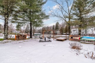 Inclus : Luminaires, habillage des fenêtres, thermopompe murale MAX-R, réfrigérateur Samsung, cuisinière au propane Bertazzoni, lave-vaisselle Asko, aspirateur central et accessoires, pompe d'évacuation + pompe d'évacuation avec batterie d'urgence, tondeuse, spa et son gazebo, balançoire extérieure, quai.